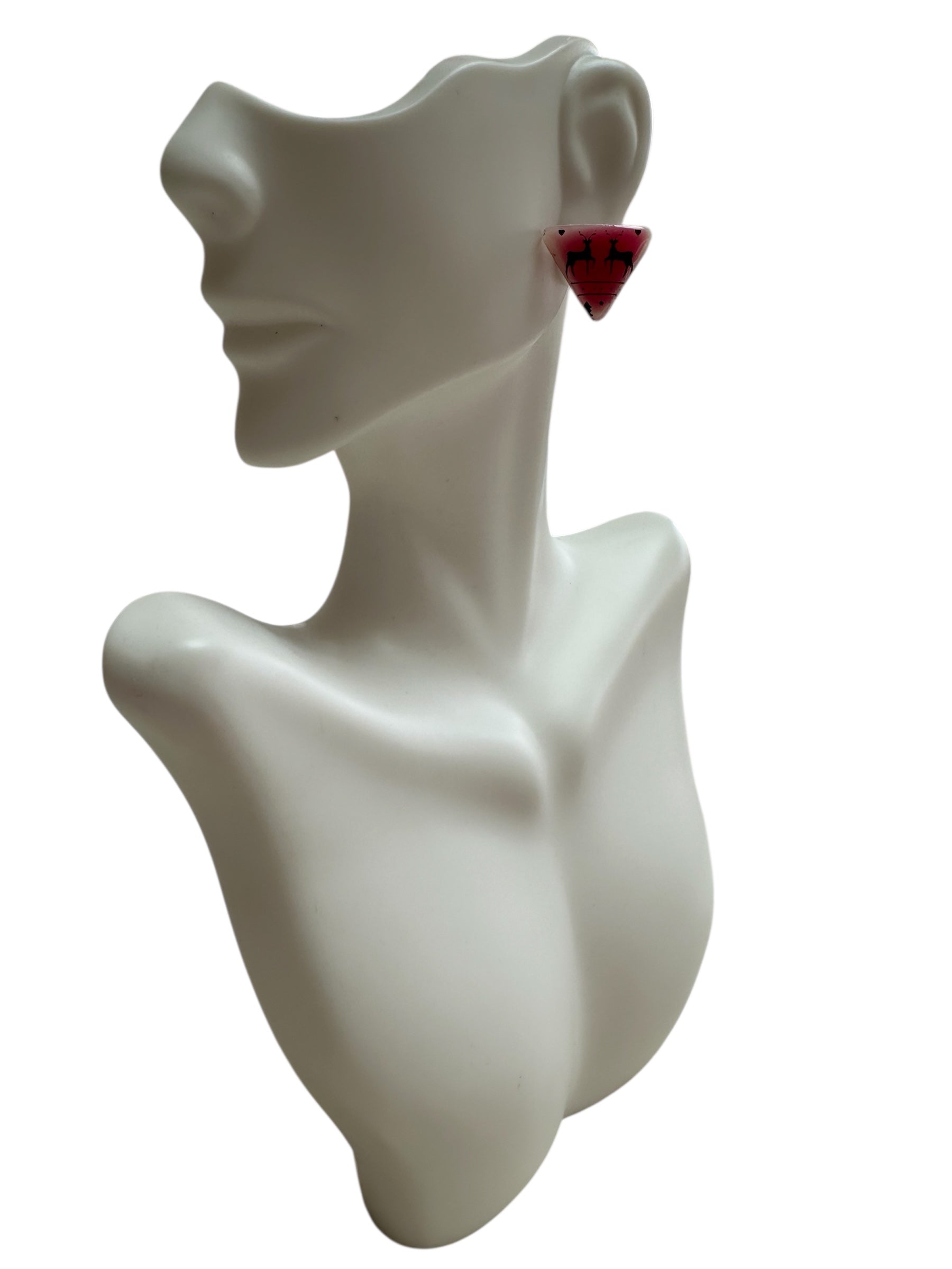 Celebrate the magic of the season with these Winter Reindeer Triangle Stud Earrings. Featuring a soft pink ombré background and delicate black reindeer silhouettes, these geometric studs bring a modern twist to classic holiday charm. Lightweight, glossy, and eye-catching — they’re perfect for adding a festive accent to your winter wardrobe.