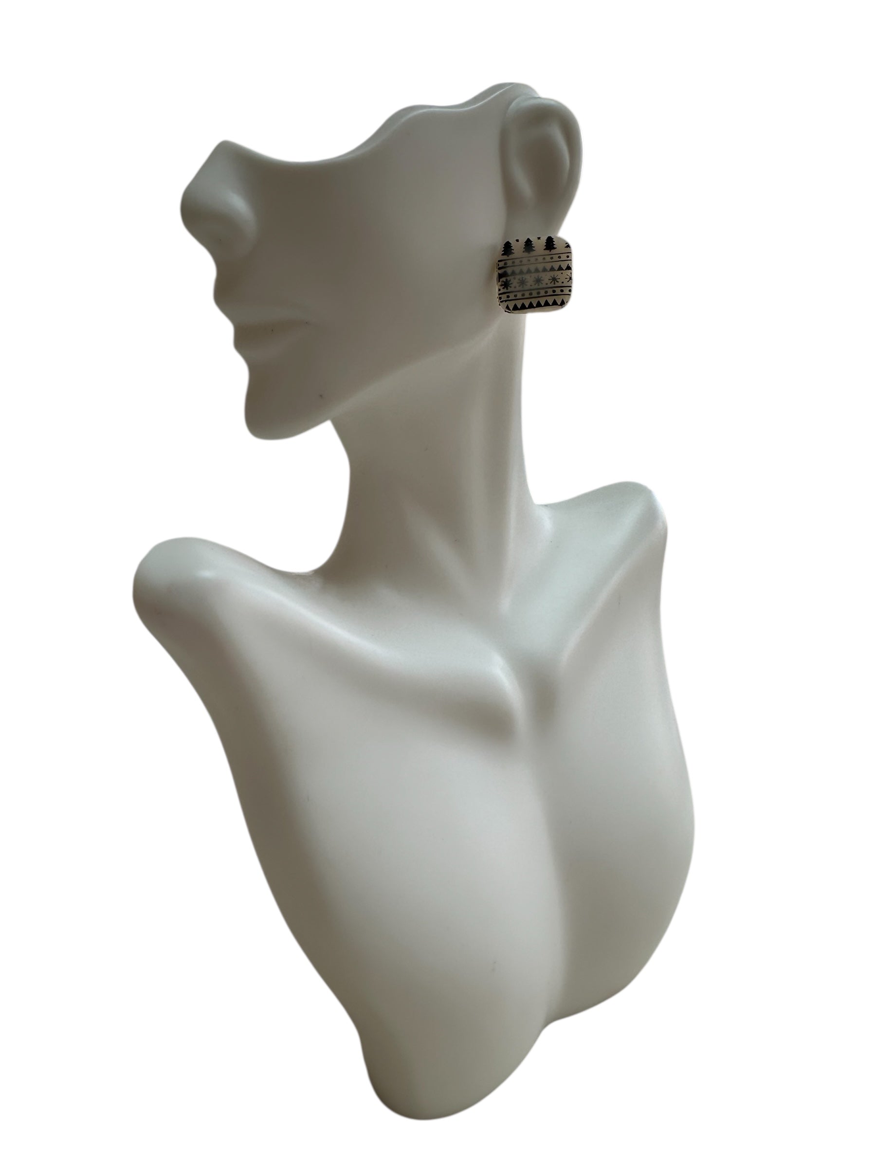 Cozy winter vibes meet modern minimalism in these Winter Snowflake Square Stud Earrings. Crafted in a soft cream tone and decorated with tiny snowflakes, trees, and festive geometric patterns, these studs bring a subtle but unmistakable holiday charm to your everyday look.
